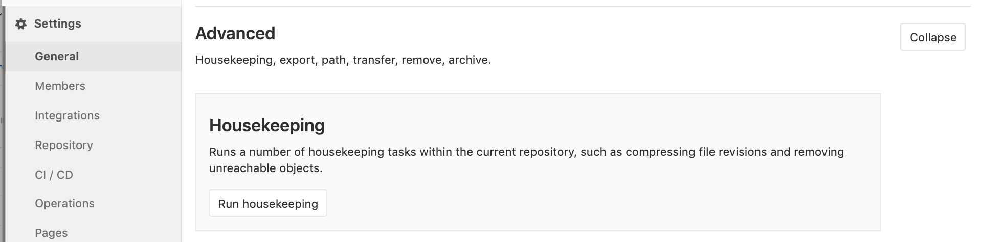 Housekeeping settings configured in Admin Area > Settings > Repository.