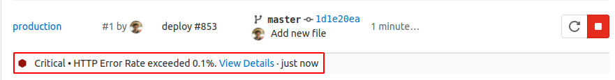 If you set up alerts for Prometheus metrics, alerts for environments are shown on the environments page. The alert with the highest severity is shown, so you can identify which environments need immediate attention.