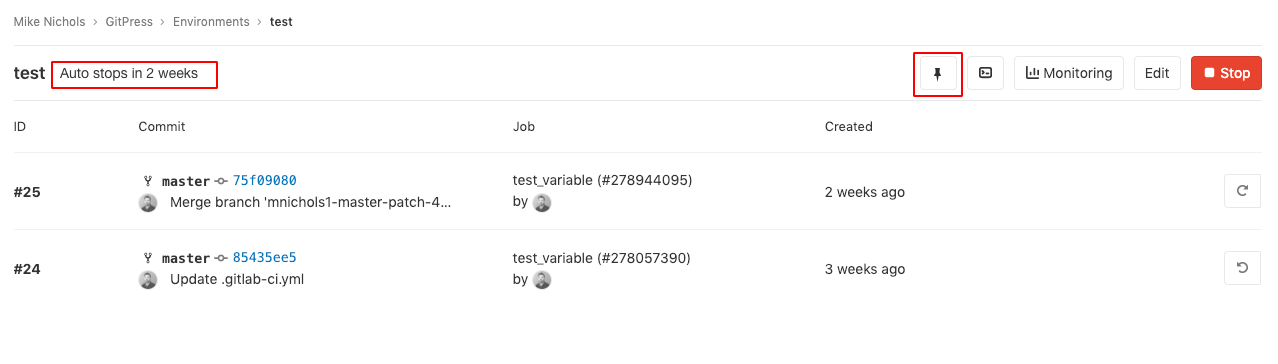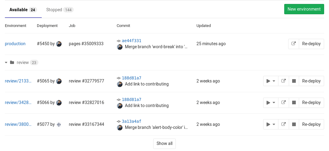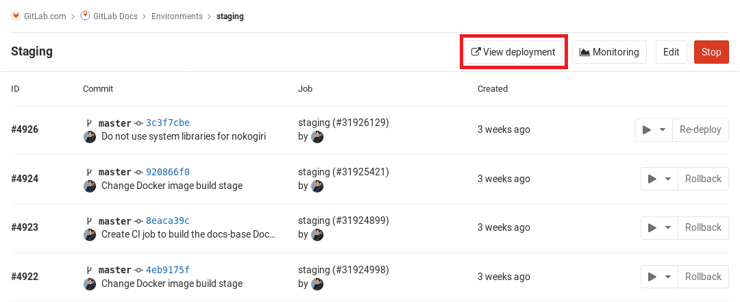 is exposed in various places within GitLab. Each time a job that has an environment specified