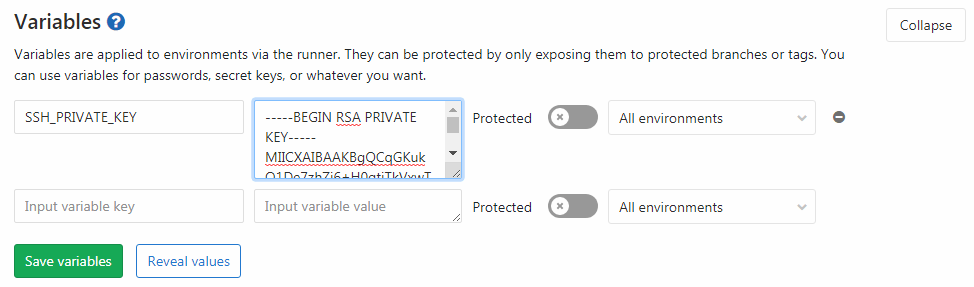 variable as an SSH private key.