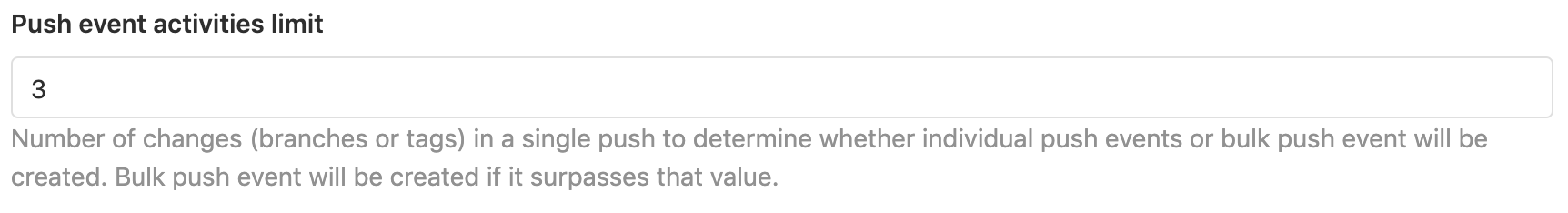This allows you to set the number of changes (branches or tags) in a single push to determine whether individual push events or bulk push event will be created. Bulk push events will be created if it surpasses that value.