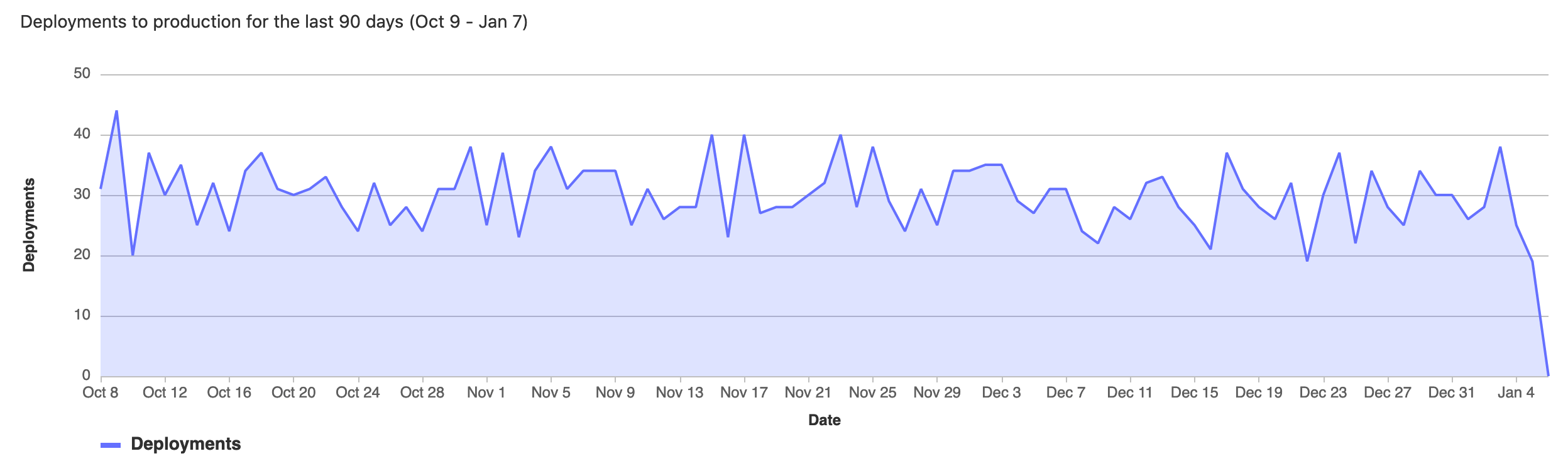 The Analytics > CI/CD Analytics page shows information about the deployment frequency to the