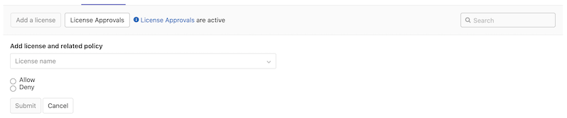 - Create an approval group in the project policies section for License Compliance. You must set this approval group's number of approvals required to greater than zero. Once you enable this group in your project, the approval rule is enabled for all merge requests.