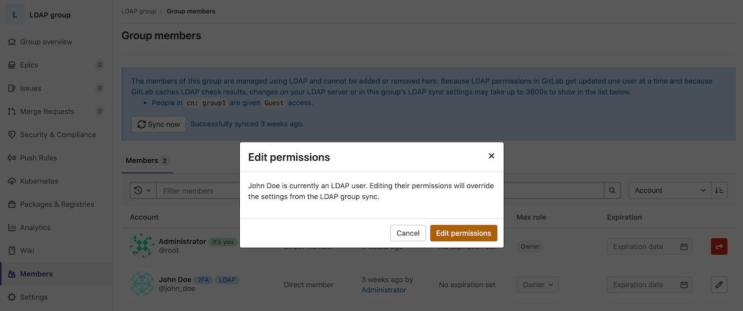 - Expand the Permissions, LFS, 2FA section, and select Member lock.