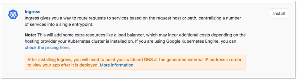 Click the Install button next to the Ingress application to install Ingress.