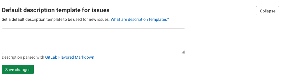 - Fill in the Default description template for issues text area. Since GitLab merge request and issues support Markdown, you can use it to format headings, lists, and so on.