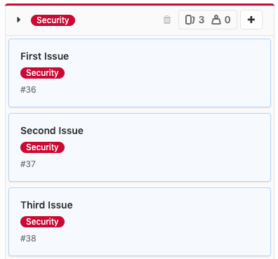 If the To Do and Doing labels don't exist in the project or group, they are created, and their lists appear as empty. If any of them already exists, the list is filled with the issues that have that label.