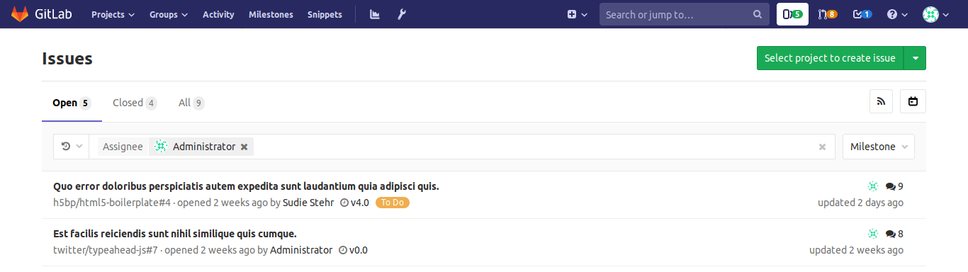The number displayed on their right represents the number of issues and merge requests assigned to you.
