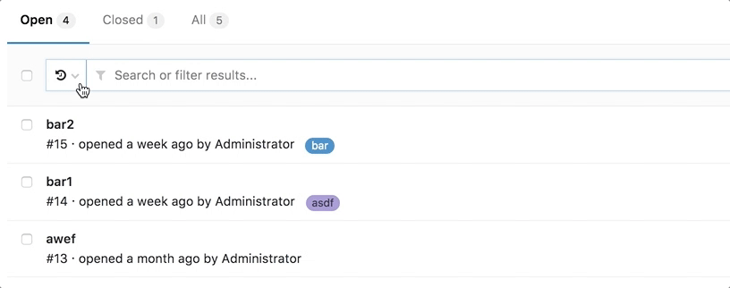 You can also filter the results using the search and filter field, as described below in Filtering issue and merge request lists.